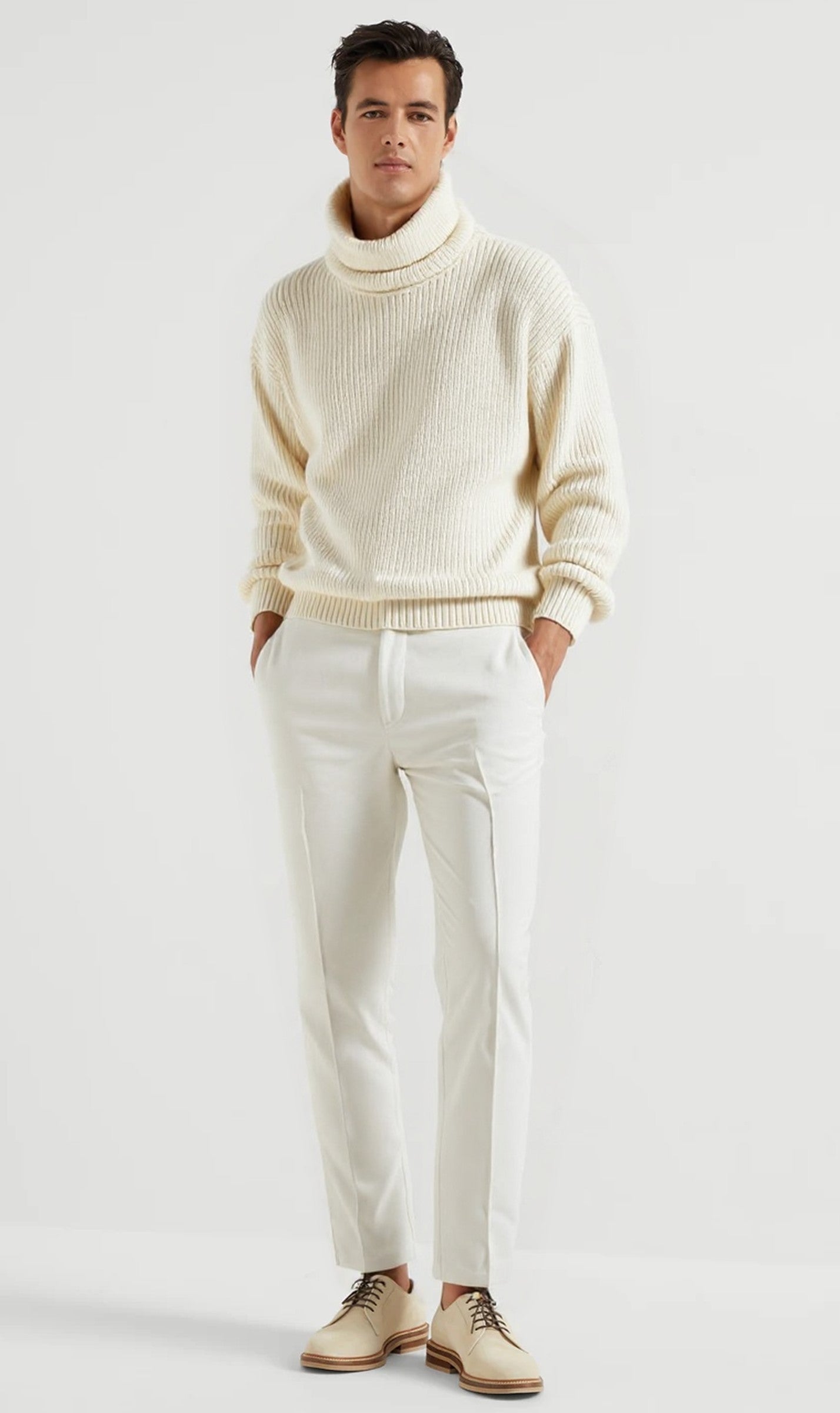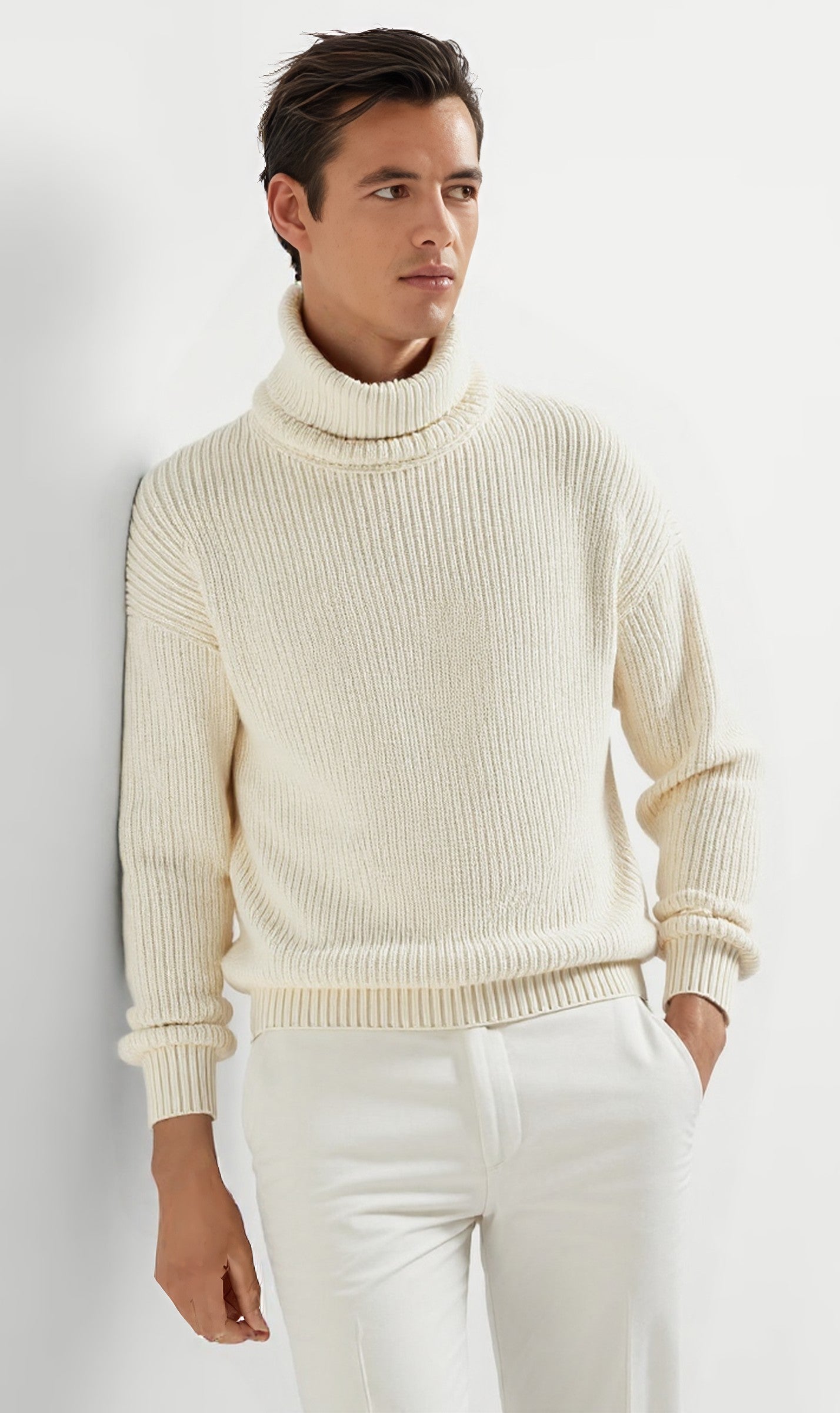 Wrap yourself in understated elegance with the Alpine Cream Set — a polished winter-ready look that pairs warmth with quiet luxury. The chunky ribbed turtleneck sweater offers plush texture and structure, while the tailored cream trousers bring clean lines and timeless appeal. A minimal yet refined outfit for crisp days and cozy evenings.