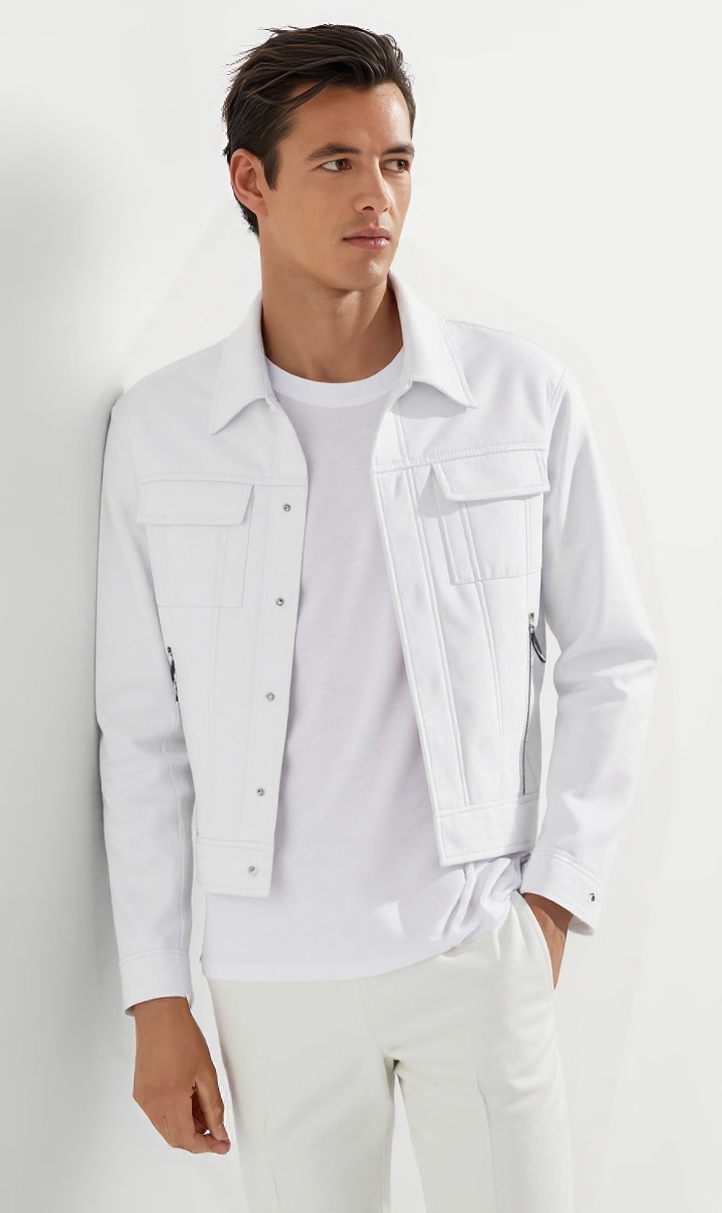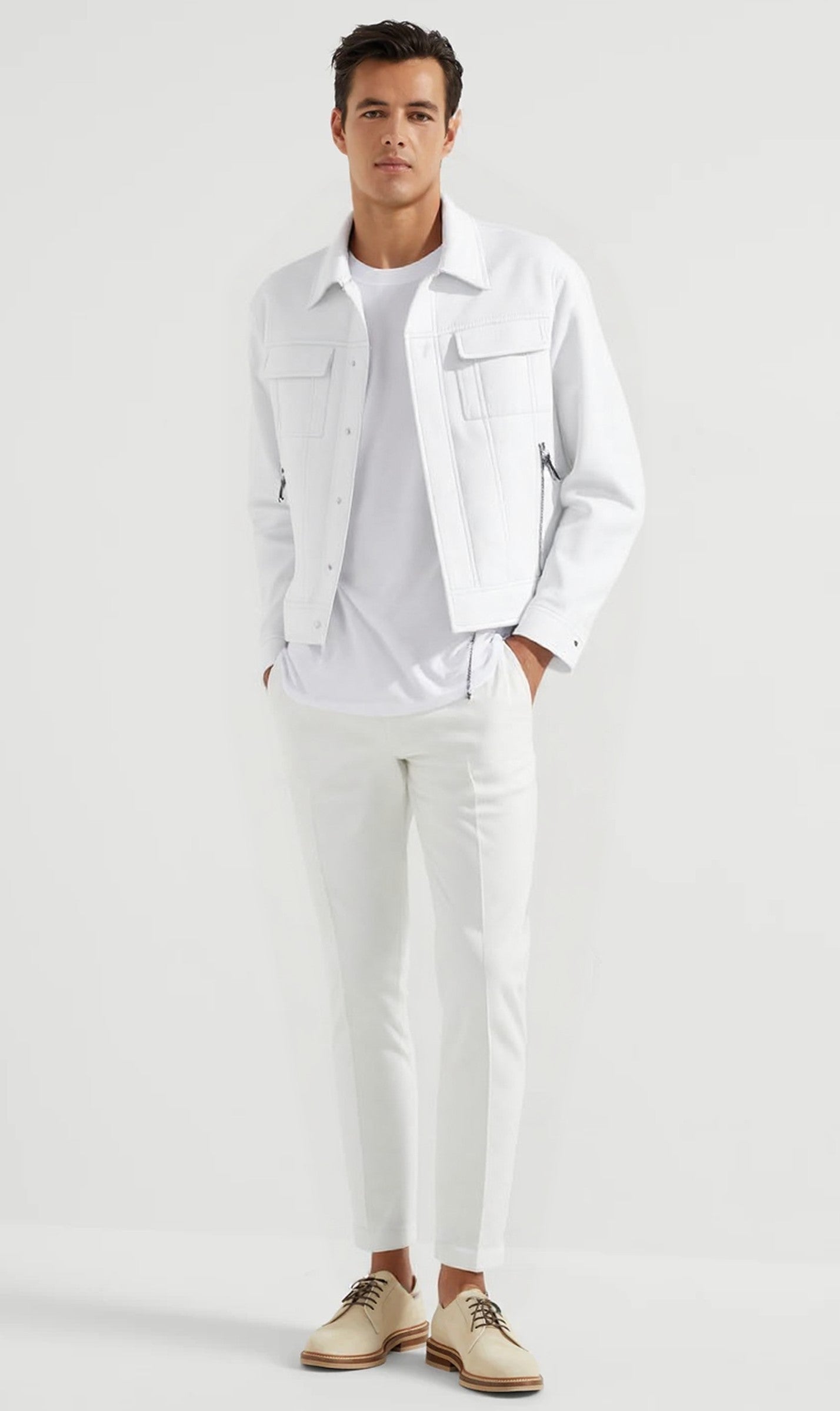 Strike the perfect balance between crisp and cool with the Canvas Edge Set — a clean-cut outfit designed for effortless street-to-studio transitions. The structured utility jacket brings a modern edge with flap pockets and zip accents, layered over a relaxed crew-neck tee and tapered trousers. A sharp, all-white uniform with laid-back precision.